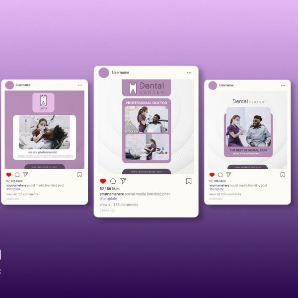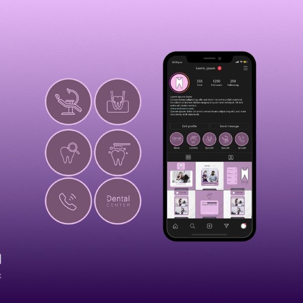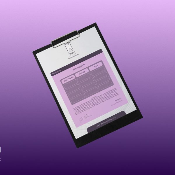 هویت بصری دنتال سنتر بر پایهی رنگهای بنفش و سفید شکل گرفت؛ ترکیبی که هم حس آرامش و بهداشت را القا میکند و هم متمایز و بهیادماندنی است. لوگوی مینیمال با فرم دندان ساده و مدرن طراحی شد تا هویت برند در یک نگاه برای مخاطب مشخص باشد.